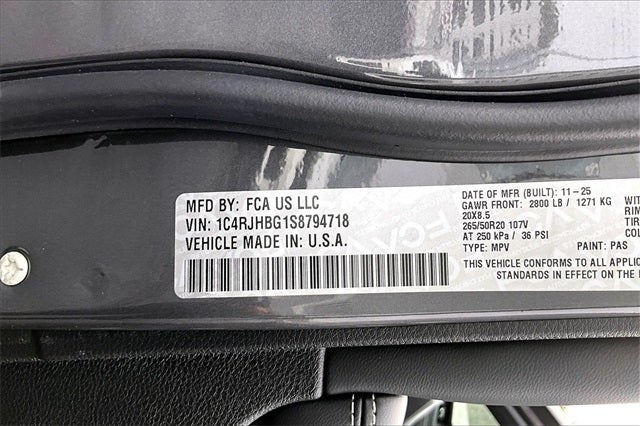 Sudbay Chrysler Dodge Jeep Ram is proud to present you with another True Market Priced Vehicle. This 2025 Jeep Grand Cherokee Limited is loaded with the following Factory Options: 4WD Blackout Model (Black Painted Roof, Delete Limited Badge, Dual-Pane Panoramic Sunroof, Gloss Black Exterior Accents, and Wheels: 20 x 8.5 Black Painted Aluminum), Quick Order Package 23E, 4WD, 4-Wheel Disc Brakes, 6 Speakers, ABS brakes, Active Noise Control System, Air Conditioning, Alloy wheels, AM/FM radio: SiriusXM with 360L, Anti-whiplash front head restraints, Audio memory, Auto High-beam Headlights, Automatic temperature control, Brake assist, Bumpers: body-color, Capri Leatherette Seats, Compass, Delay-off headlights, Driver door bin, Driver vanity mirror, Dual front impact airbags, Dual front side impact airbags, Electronic Stability Control, Emergency communication system, Four wheel independent suspension, Front anti-roll bar, Front Bucket Seats, Front Center Armrest w/Storage, Front dual zone A/C, Front fog lights, Front License Plate Bracket, Front reading lights, Fully automatic headlights, Garage door transmitter, Heated door mirrors, Heated front seats, Heated rear seats, Heated steering wheel, Illuminated entry, Knee airbag, Low tire pressure warning, Memory seat, Model Year Tracking, Navigation System, Normal Duty Suspension, Occupant sensing airbag, Outside temperature display, Overhead airbag, Overhead console, Panic alarm, ParkView Rear Back-Up Camera, Passenger door bin, Passenger vanity mirror, Power door mirrors, Power driver seat, Power Liftgate, Power passenger seat, Power steering, Power windows, Radio data system, Radio: Uconnect 5 Nav with 10.1 Display, Rear anti-roll bar, Rear reading lights, Rear window defroster, Rear window wiper, Remote keyless entry, Security system, Speed control, Speed-Sensitive Wipers, Split folding rear seat, Spoiler, Steering wheel mounted audio controls, Tachometer, Telescoping steering wheel, Tilt steering wheel, Traction control, Trip computer, Turn signal indicator mirrors, Variably intermittent wipers, Voltmeter, and Wheels: 18 x 8 Polished/Painted Aluminum!!